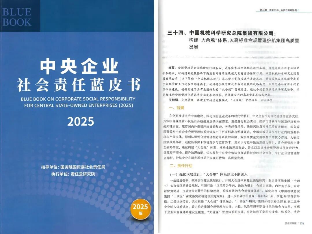 中國機械總院典型案例入選《中央企業社會責任藍皮書(2025)》